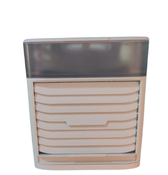 Mantente fresco en cualquier lugar con este mini ventilador enfriador de aire portátil. Su diseño compacto para escritorio proporciona una brisa refrescante ideal para la oficina, el hogar o espacios pequeños. Funciona mediante tecnología de enfriamiento por evaporación, ayudando a reducir la temperatura del aire y mejorar la comodidad personal.